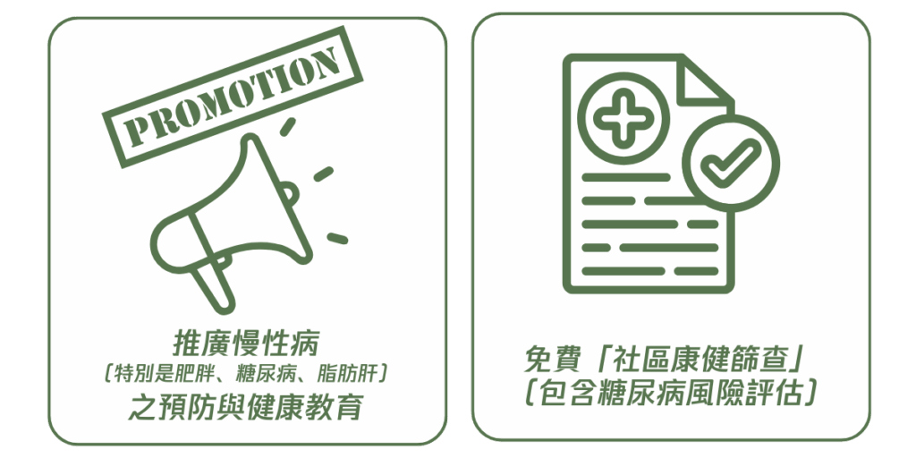 呼應香港醫務衛生局提出的「早發現,早治理」理念,透過招募與培訓「社區康健大使」,在社區落地執行免費篩查與健康教育,期望長遠減輕醫療系統負擔,推動「香港零糖尿」願景。
